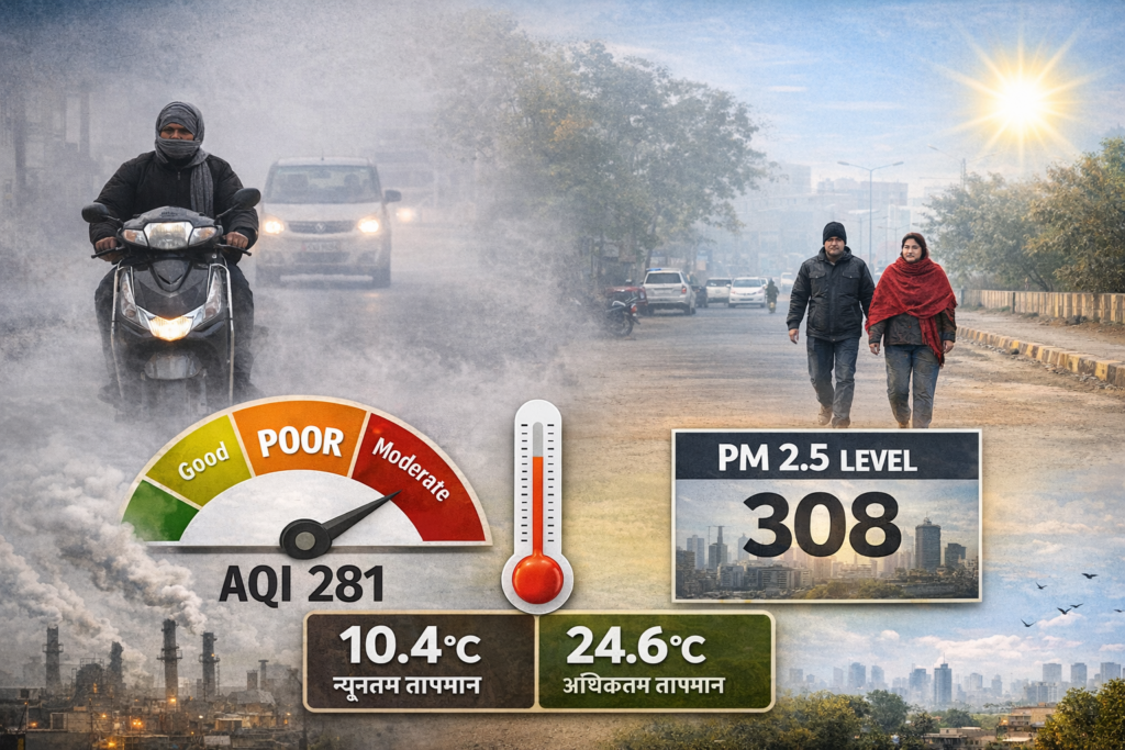 सुबह के समय ठंडी हवाओं के चलते लोगों को ठिठुरन का सामना करना पड़ा, जबकि दोपहर में निकली तेज धूप ने राहत दी। मौसम विभाग के अनुसार, न्यूनतम तापमान 10.4 डिग्री और अधिकतम तापमान 24.6 डिग्री सेल्सियस दर्ज किया गया।